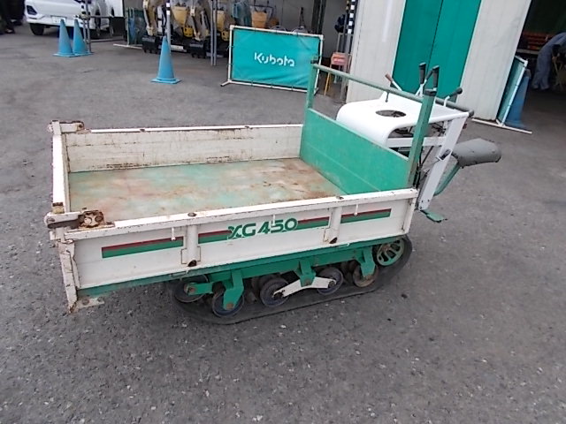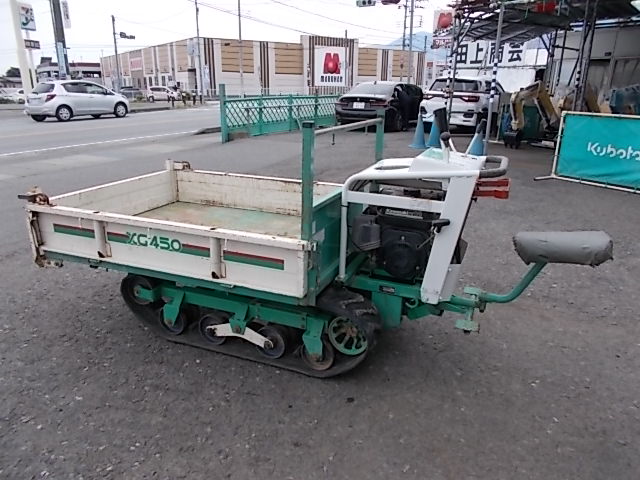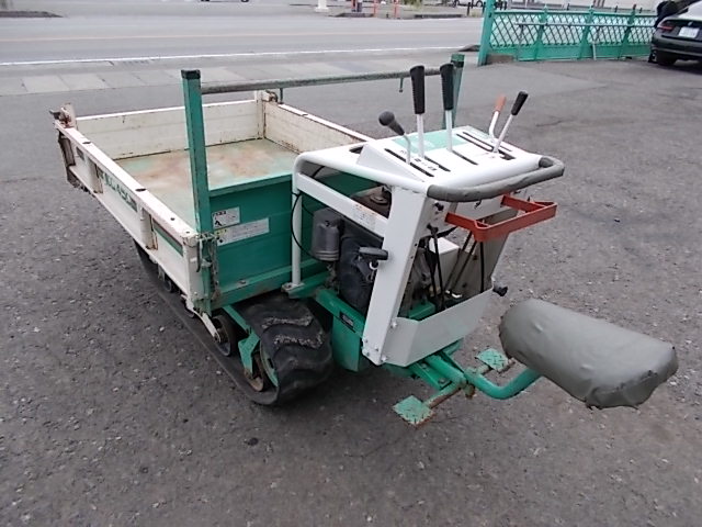 ゴムクローラ動力運搬車/空冷単気筒ガソリンエンジン/リコイルスタータ式/前進4速:後進2速/ハンドダンプ/主な交換部品/エンジンオイル交換済・ギヤミッションオイル交換済・エンジン停止装置新設・その他各部点検整備済 |