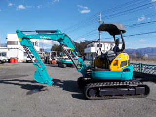 後方小旋回ミニバックホー/水冷3気筒排ガス3次対応デイーゼルエンジン/走行2速/盗難防止キー(登録赤キー、スペアーキーあり)/オートアイドル/自己診断機能付液晶ディスプレイ/ダイアル式アクセル/バケット・アーム補強・その他各部点検整備済 |